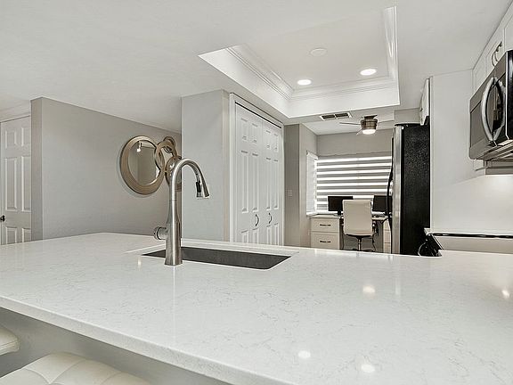 This furnished, 2 bedroom, 2 bath, split bedroom floorplan condo has been newly remodeled including the plumbing and electrical work. Kitchen upgrades include all new quartz countertops, a large pantry with pull-out drawers, custom-built office area, backsplash and under cabinet accent lighting. Bathrooms have been updated and showcase a spacious walk-in shower, custom tile work and are prepped for grab bars. 18” diagonal floor tile throughout provides durability plus easy maintenance. Separate spacious laundry room w/built-in cupboards, new washer & utility sink. The prime location of this first floor unit provides easy access to the pool, grilling area, walking path, boardwalk and parking. Unit comes with a carport and storage unit for bikes, beach chairs, etc. Naples Walk is one of 17 communities in Bay Forest, offering unparalleled amenities for residents - Social Committees, Ladies’ Events, Table Tennis, Bone Builders, Pickleball, Tennis, Fitness Center, Ballroom Dancing, Yoga/Line Dancing, Bay Forest Artists, Classic Movie Night, cycling paths, 8 pools, free kayaking, and boardwalk. Pets & rentals are allowed. This is an exceptional opportunity to own a retreat in paradise.