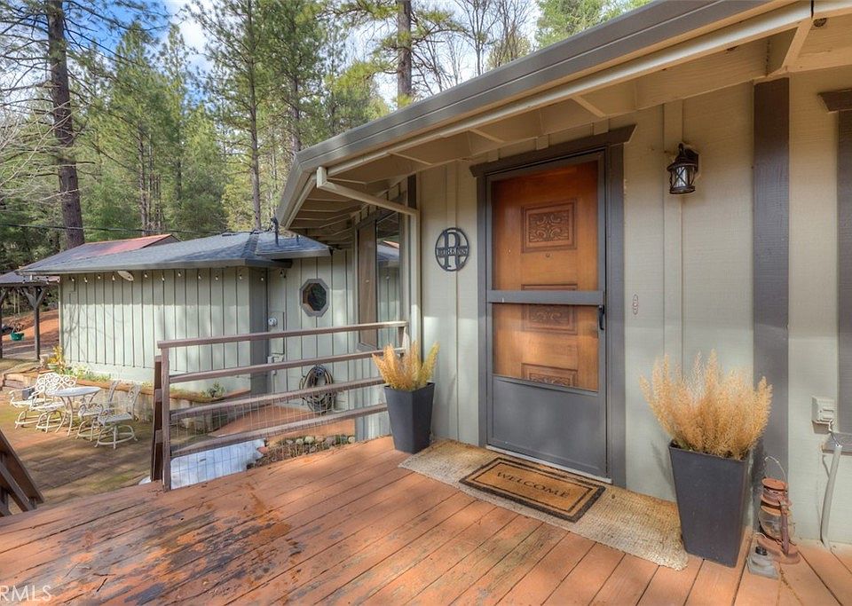 Welcome to your dream rustic home in the woods, nestled near the picturesque Paradise Lake on desirable Coutolenc Road. If you're an outdoor lover, you will be in heaven with the abundance of hunting, fishing, hiking and exploring available right at your doorstep. The peaceful forest setting with your own pond is a serene oasis that is sure to calm your senses. As you enter the gated driveway, you will be greeted by the tranquil pond within a gorgeous forest setting. The serene setting continues all the way up to the homesite, where you can enjoy breathtaking views of the land from your own deck. This home has recently undergone upgrades including a new roof, HVAC system, fresh paint and a brand new front deck-currently underway. With ample patio and deck space, you will have plenty of room to entertain and relax while taking in the beauty of nature. The sellers have also been working on defensible space to ensure safety and peace of mind. Upon entering the home, you will be charmed by the rustic character of the carousal style constructed home. The wood beamed ceilings and large open concept layout with a wood burning stove and charming stone surround create a warm and inviting ambiance. The updated bathrooms on the main level add to the sophisticated feel of the home. The kitchen is open to the dining and living areas, making it the perfect space to entertain guests. Downstairs, you will find the entertainment bar room with its own half bath, perfect for hosting game nights or movie marathons. The property also borders hundreds of acres of Sierra Pacific land, offering endless opportunities for exploration and adventure. Properties with this much to offer are a rare find, so don't miss your chance to own this slice of paradise. Come and experience the warmth and sophistication of this rustic home in the woods today!