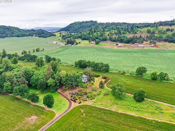 Country Sophistication! Secluded Estate! Gated entry w/long private drive w/bridge crossing creek to fabulous hilltop setting! 115+ acres (100 acres in grass seed). Outbuildings include 2880 SF general purpose building, pole barn & horse barn. Charming custom built home w/2353 SF on 1 level. High ceilings, hardwood & carpet flooring; Lots of windows framing views. Spacious kitchen/Family rm combo. Huge master suite w/cathedral ceilings.