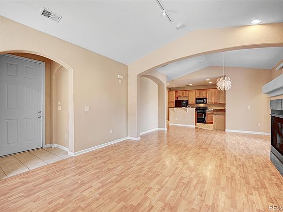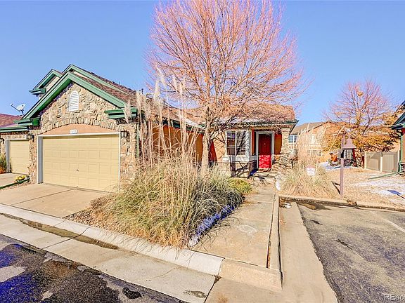Here's a great move in ready end unit townhome in Cottage Grove. Light and bright, large windows, open concept floorplan and modern features and finishes. The covered front walkway opens into a tiled foyer. Rounded archways, high ceilings and plank flooring create a stunning setting with contemporary appeal. The gas log fireplace is nicely positioned to enjoy it from several areas. Kitchen features include GE appliance package, solid wood cabinets, granite countertops, kitchen island, and built in tech desk provide generous surface and storage spaces. A large sliding door in the dining area walks out onto the fenced patio area. Bedrooms are located on opposing ends of the home, each is light and bright. The large primary suite looks onto the greenspace and private patio. 2 level windows and tall ceilings really enhance this space. The primary bathroom has double sink vanity with plenty of drawer space, large soaking tub and separate tiled shower, and it's all connected to the walk in closet. The 2nd bedroom has easy access to another full bath. Laundry is centrally located in the home for added convenience. The attached garage has direct unit access. Cottage Grove offers a fully fenced and gated community for enhanced security and privacy. The central location is great! 5 minutes to light rail. Under 10 minutes drive to the new nationally ranked UC Health campus. Less than 30 minutes to downtown Denver, DIA in under 20. It's no wonder properties in this community sell FAST! Here's your chance, schedule your showing today.