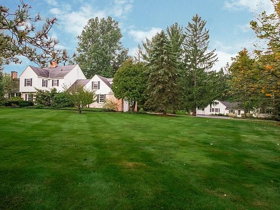 Gracious & elegant mini-estate: 4 BR Western Reserve colonial, 2-stall barn or extra garage, separate large office(), 1-2 paddocks, and 20x40 arena. Captivating property. Updated interior-many recent improvements. Gorgeous hardwood floors throughout. 3-season porch w/gas fireplace. Living Room with vaulted, beamed ceiling. Eat-in kitchen overlooks scenic backyard. Finished basement w/fireplace and craft area. Owner's suite upstairs with 19x14 studio/exercise rm/closet/whatever! 4th BR on 1st floor w/full bath. Office on 1st as well. Beautiful grounds, curb appeal, porches. Geauga County taxes and No RITA tax because it's in Russell Township! Wonderful package. Gorgeous street, great neighbors! Call for a showing today.