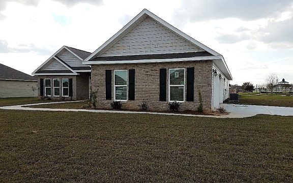The Mila/A. Very popular split bedroom plan with 20x14 Master Suite that opens onto a 18x11 Covered Back Porch. Master Bath has separate 5 ft shower, Garden Tub and double Granite-top vanity. Common living area is open for family gatherings and entertainment. Lots of tall windows let in natural light for a sunny interior. The huge kitchen also opens to the great room and has Granite counter tops and Stainless Steel appliance. A large laundry and mud room area sits directly off the 3-car garage which helps keep messes out of the house. The home is on a .37 acre corner lot close to tennis, basket ball, gazebo, fountain and common area. Ponds in the front have fish. Valamour is only about 5 miles from 181 and 2 miles from I-10.