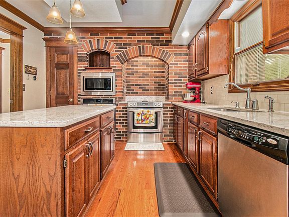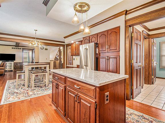 - Bookcases, Built-in Desk, Ceiling Fan(s), Countertops-Solid Surf, Eat-in Kitchen, Kitchen Island, Wet Bar, Formal Dining Room