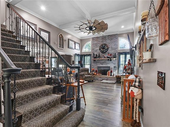 Immaculate Estate Living on Acreage in Basehor, KS! Welcome to 15196 Parallel Road, a stunning residence offering the perfect blend of character, comfort, and functionality on more than an acre of beautifully landscaped grounds! This 4-bedroom, 3.5-bathroom home was designed with attention to detail and features a desirable first-floor primary suite, a formal dining room (potential office), and an open-concept main level with a gorgeous kitchen, striking stairway, and inviting family with a floor to ceiling fireplace! The upstairs features 2 bedrooms along with a full bathroom, vaulted ceilings, spacious closets and a great layout! The finished walkout basement is a home within itself, complete with a full sized second kitchen, expansive living space, and a thoughtfully designed ADA accessible bathroom. Step directly outside to additional outdoor living areas framed by lush greenery and expert hardscaping. With the backyard being a private oasis, you'll notice a fully enclosed custom white privacy fence enhanced by meticulous landscaping, mature trees, and a charming fountain that conveys with the property! Car enthusiasts, hobbyists, or those needing extra storage will love the attached two-car garage paired with a detached shop, both accessible via concrete! This is more than a home, it's a retreat. Rarely does a property combine so many sought-after features, acreage, privacy, modern farmhouse finishes, and versatile living spaces! Only Minutes from the Legends and KC Speedway!