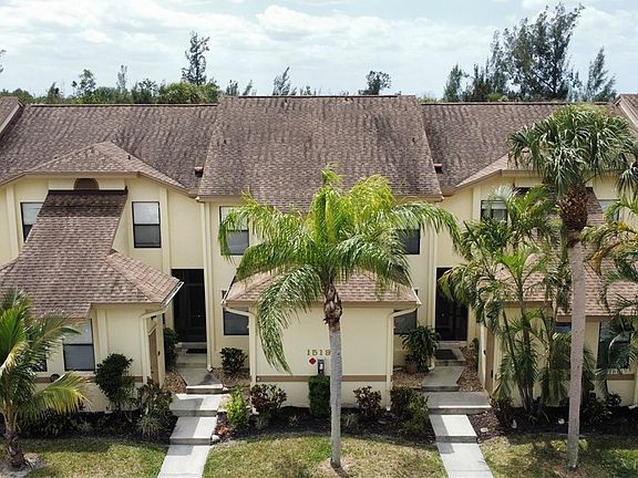 There are two large bedrooms that easily accommodate a king bed, dressers, and a desk; and two full baths. There’s ample storage too; a private outdoor storage shed, and a space under the staircase, both with shelves and lighting. Additional storage space in the attic. A/C replaced Feb. 2025, water heater replaced 2023. Stand in your kitchen gazing at the palm trees and blue sky. This charming condo offers you beauty, comfort, and convenience; it’s a gem.