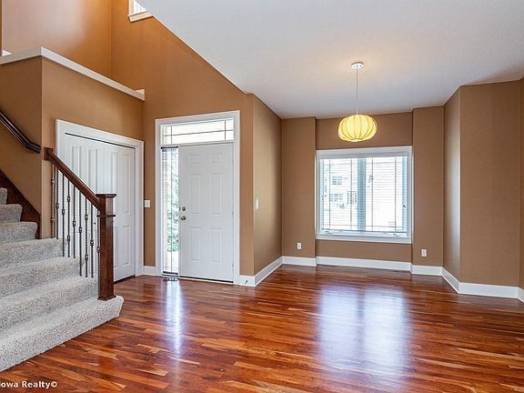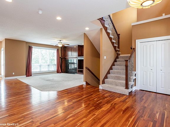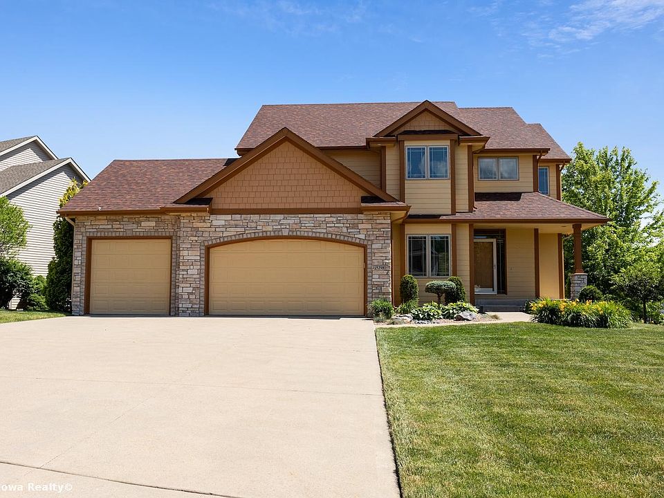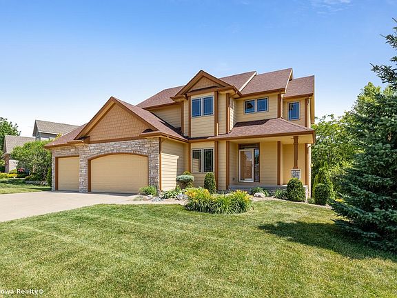 Unique open floor plan in this 5 BR Two Story home. Great attention to detail. Well established Clive neighborhood in Waukee school district. You will find beautiful cherry floors, dark maple cabinets, granite counters & SS appliances. 2nd floor 4 large BR & Laundry Spacious MBath ceiling water feature over tub (a must see Lower level complete family room, bedroom, full bath & office/flex room. Walk out to private backyard beautifully mature landscaping by Timberpine , full Sport Court & Irrigation