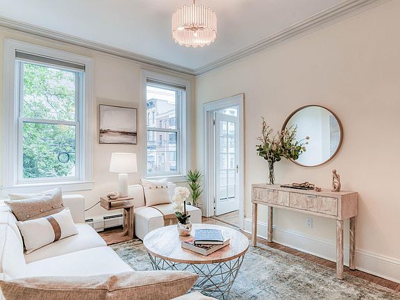 As soon as you enter this home you'll be enchanted by the abundance of light from eight large windows and the beautiful tree line visible from the living room. With close to 1000sq./ft. this home features high ceilings and 2 distinct bedrooms each able to accommodate a queen size bed. Sunlight also floods through tall windows facing east and south in the master bedroom. The kitchen area bathes in the beautiful southern light permeating throughout the space. The kitchen features a separate eating area as well as quartz counters and stainless steel appliances. The spacious living room area features an adjacent room which can be used as a second sitting room, home office or gym. This oasis is located close to restaurants, coffee shops and within less than ten minutes walk to the path or bus. The exterior of the building has just been fully refinished. Benefit from the low maintenance and taxes.