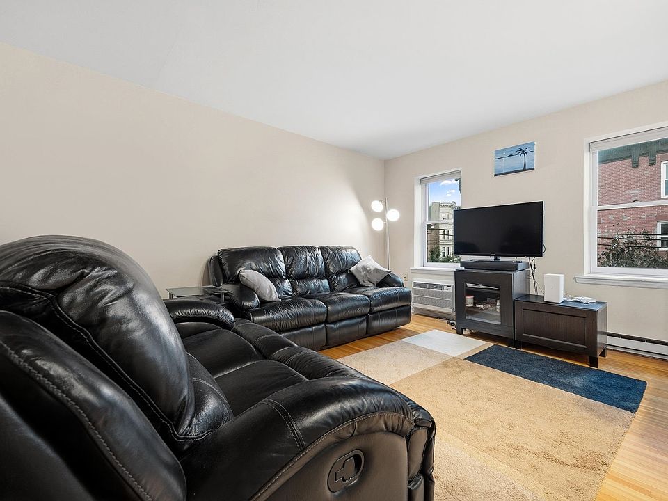 Charming 1-Bedroom, 1-Bathroom Apartment in the Heart of Hoboken! Spacious and inviting living space has large south-facing windows for tons of natural light. Open floor plan leads into convenient kitchen space with stainless steel appliances. Spacious bedroom with tons of closet space, along with a sleek and contemporary bathroom. The home also includes hardwood floors, wall AC, and in-unit washer/dryer hookups. Located just moments away from the Path train, bus, local shops, restaurants, the waterfront, and everything Hoboken has to offer.