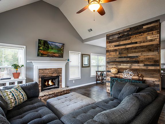 This beautiful move-in ready home in Dallas offers the updates and privacy you are looking for! The rocking chair front porch welcomes guests right into the vaulted living room with a stacked stone fireplace and gorgeous shiplap wall. The bright, updated kitchen boasts newer white cabinetry, backsplash, stone counters, and stainless steel appliances and is open to the dining area. The spacious master bedroom flaunts an ensuite bath with dual vanities, a separate soaking tub, and shower. Two generously sized secondary bedrooms share a full bath in the hall. On the terrace level, the space is great for entertaining or it can be used as a bedroom and bonus room since it conveniently pairs with a full bath. Outside, the deck overlooks the fenced backyard with a few mature trees for shade. Schedule a home tour today before it is gone!