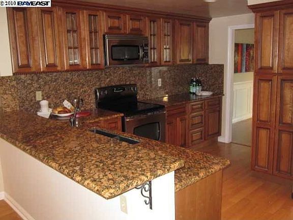 Charming - remodeled kitchen with granite counters, stainless appliances, updated baths, rubbed oil bronze faucets and fixtures, new carpeting, designer paint, crown molding, new fixtures, doors, hardware. Shows like a model !