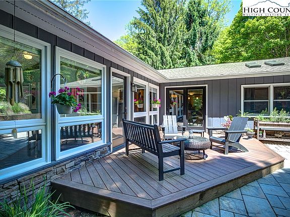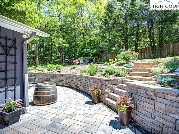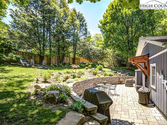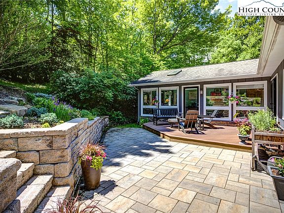STUNNING BLOWING ROCK GEM in coveted Artists Aly. FANTASTIC LOCATION to access world-class hiking, the Blue Ridge Parkway and Grandfather Mountain while only 20 minutes to King Street and ASU! Adjacent vacant lot included in sale assuring long-term privacy; property backs up to the unspoiled natural beauty of OVER 4,000 ACRES of Federal land enhancing the peaceful and tranquil setting. This immaculate gorgeous home fills with natural light and features two living spaces with both a spacious comfortable open living room as well as cozy den with gas fireplace and acid stained concrete flooring. Super special touches throughout including beautiful reclaimed skating rink wood flooring and light switch covers handmade by the potter and original owner Lynn Jenkins. Roomy master suite was added in 1990 and features vaulted ceilings; guest bedroom and office/study/craft room are both currently set up as offices with the study offering attractive built-in desk and bookcases. Great open concept layout; remodeled kitchen with stainless steel appliances and maple cabinets; laundry room has lots of pantry space and includes a second stainless steel refrigerator. Spectacular hardscape is creating an absolutely magnificent outdoor setting including a Trex deck; lovely landscaping and flat yard with fire pit are overlooking the fantastic patio. The stream is the head of Little Laurel Creek which feeds Blue Ridge Parkway’s beautiful Price Lake. Truly an incredibly charming and very special property. A rare offering, this is a unique opportunity to become a part of this cherished Blowing Rock community.