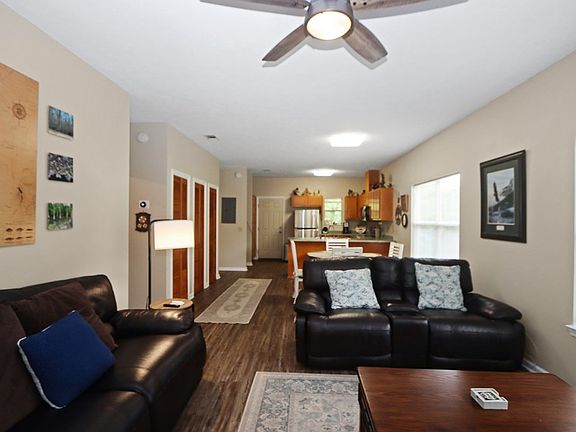 Charming 2 bedroom 1 bath waterfront retreat on the Dead Lakes! Tucked away at the water's edge, this elevated home offers peaceful views and smart design throughout. Inside, an open floor plan pairs with generous interior storage, making the space feel both comfortable and functional. The kitchen offers all the necessities and tastefully separates the formal dining space by a breakfast bar accommodating up to 4. Enjoy waterviews and direct back deck access from the living space. Each of the bedrooms are of ample size, the master features Lake views and a double closet, while the second bedroom has a sizeable closet and built in bookcases. The Jack & Jill-style bath features separate sinks with a shared shower and toilet—ideal for guests or shared living. Step outside to the screened rear deck, spanning the width of the home and overlooking the tranquil waterway—perfect for morning coffee or evening cocktails. Built on pilings, the space below provides shaded parking, an enclosed storage area, kayak racks, and room to entertain. Plus, a covered boat shed ensures your watercraft stays protected and ready to launch. This is laid-back Florida living at its best and wont last long!