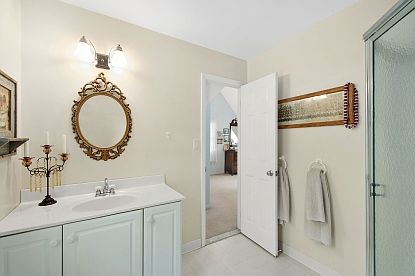 Offering 5 bedrooms and 4 baths this charming builders own is sited on half an acre in Southampton's Big Fresh Pond water front community. Featuring a 20x40 swimming pool with outdoor veranda and entertaining deck, this property is special. An open and airy floor plan is complimented by vaulted ceilings throughout, the eat in kitchen flows outward on to a covered patio with wet bar and outside dining area. Great opportunity for a investment property for rental income or a end user's paradise. Just outside of Southampton Village, and 1 mile from Elliston Park - the Hamptons is at your doorstep!