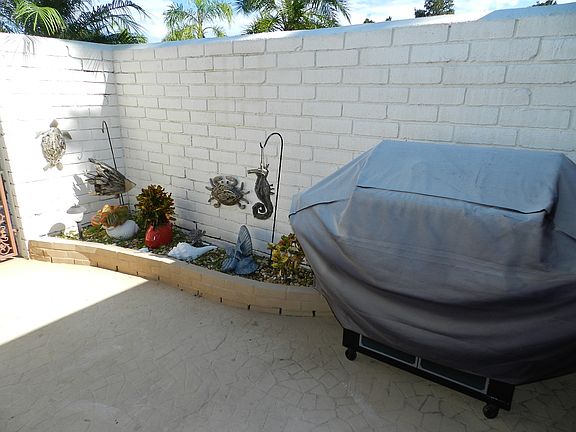 Stunningly updated and remodeled end unit villa at the best kept secret near the beaches. Private courtyard with in-ground herb garden and screened/covered patio for extra living space. Grassy park-like area next door so no neighbors on one side. Beautiful kitchen with double ovens and double dishwashers for entertaining. Plus a reverse osmosis water system which also serves the refrigerator. A handy built-in pantry stores your kitchen supplies. Gorgeous tile throughout the home enhances the beauty of the neutral color walls and in-blind sliders. Hurricane shutters added for your protection. And French doors from the master to the Florida room, solar tubes and skylight, wall mounted swivel TV in the living room, and re-insulated attic are added extras. King-size bedrooms with lots of closet space give you and your guests plenty of space. Your private boat dock with dock box add to your boating and fishing fun. In addition you have a garage with washer and dryer, storage, and a water softener plus an extra parking pad outside. Guarded/gated complex with pool, work-out facility, new tennis courts, bocce ball, shuffleboard, two clubhouses and 72-hole putting green complete the package, all within two miles to the beach. With its affordable pricing, you can now live where others vacation!