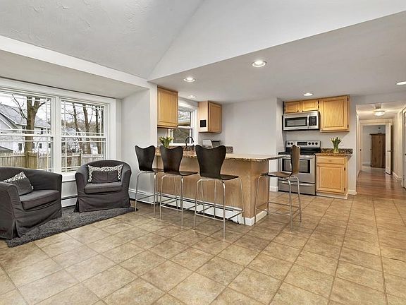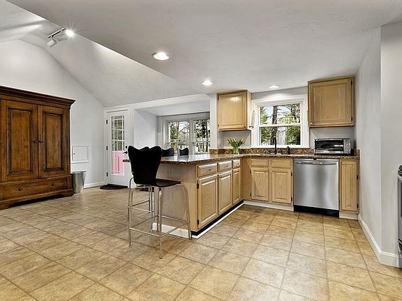 - Kit Dscrp: Flooring - Vinyl, Countertops - Stone/Granite/Solid, Breakfast Bar / Nook, Open Floor Plan, Recessed Lighting, Remodeled, Exterior Access, Ceiling - Vaulted