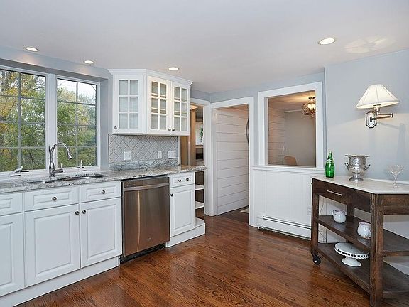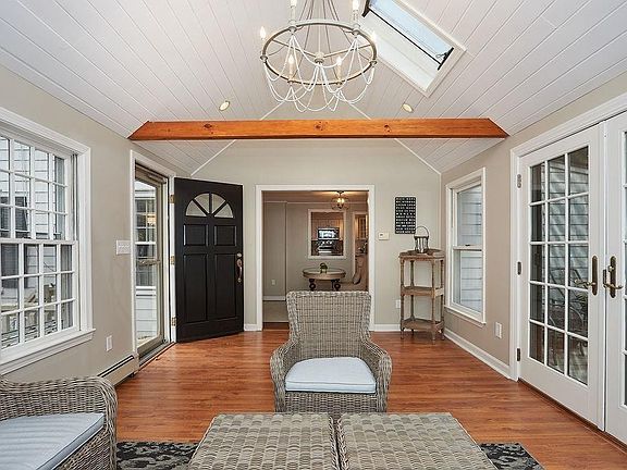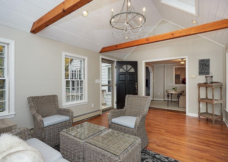 This lovely renovated Cape is nestled in country setting. Stylish kitchen and bath renovations reflect the decorator's vision to blend modern updates with original charm. Abundant natural light adds a warmth during the day, state of the art lighting carries it through the night. The sun splashed great room offers a cathedral ceiling, french doors opening to a deck designed for entertaining or relaxing on a warm summer day. Attractive landscaping, perennials, and stone lined pathways welcome guests to this inviting home. First floor bath with laundry. Detached garage with full walk-up to finished space - yoga, art studio, office? Endless possibilities when you add heat. Country road, take me home!
