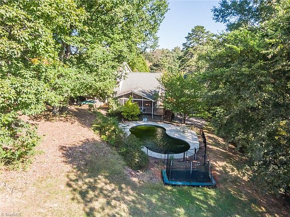NEW PRICE!!GOLF COURSE LOT set back from the 11TH FAIRWAY with SALTWATER POOL & SCREENED PORCH, BERMUDA RUN COUNTRY CLUB, minutes from WINSTON-SALEM with quick access to Hwy 40. Bermuda Run is a 24-hour gated/manned security community with gate fee added into yearly tax bill. This contemporary style home has 4 bedrooms with the master and the laundry area on the main level, decks on two sides for sitting out and entertaining, 3 fireplaces, 2-car garage with extra space for workshop area or storage. Close vicinity to tennis courts and Bermuda Run pool/lazy river. This section of Bermuda Run does not require HOA fee or membership to amenities though they are available if preferred. Wonderful culdesac street. Partially wooded lot for privacy. SO much POTENTIAL in this home and just waiting for RENOVATION!