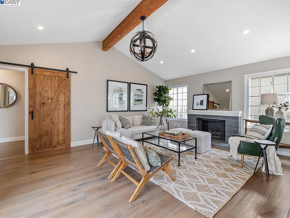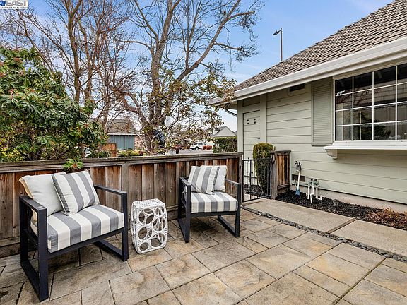 Welcome to this desirable single-story home on Bay Farm Island in Alameda! This beautifully updated 3BD, 2BA, single family home boasts French Oak HW flooring, newer lighting fixtures, & vaulted ceilings in the LR w. exposed beam, & fireplace providing a contemporary & modern living space. The updated kitchen features recessed lighting, SS appliances, polished granite countertops & plenty of storage. The formal DR provides an intimate & formal space to enjoy meals, while the atrium patio offers a peaceful ambiance for relaxation. The primary BR offers ample closet space, a sliding glass door leading to the private backyard, & an ensuite BA. The second BR features a sliding glass door to the backyard, & second BA is conveniently located adjacent to the third BR overlooking the brightly lit atrium. The show stopping backyard features a stylish stamped concrete patio w. charming pergola, mature veg, raised garden beds, & low-maintenance landscaping. A beautiful courtyard w. slab pavers, polished river stones, invites you to enjoy the afternoon sun. Less than 5 min to sought after Bay Farm elm, SF Bay Trail, this prime location is less than a block to Toddler Playground, 2 blocks to the lagoon greenbelt, + the Harbor Bay Club. Convenient to shopping, the SF Ferry, BART, & more!