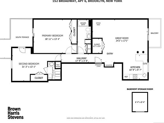 DOES WINTER HAVE YOU DREAMING OF SUNNY OUTDOOR SPACE? Look no further-this light-filled, loft-like 2-bedroom, 2-bathroom apartment with both a private terrace and a balcony is now available for rent for the first time! Perched on the top floor of a charming boutique elevator condominium, Apartment #6 spans approximately 1,250 interior square feet of thoughtfully designed living space. Freshly painted and move-in ready, this floor-through home features a spacious, open living and dining area that's perfect for entertaining. Exposed brick and abundant wood accents add warmth and character to the inviting interiors. The great room is bathed in natural light and opens to a north-facing balcony, offering striking views of the Williamsburg Bridge and Lower Manhattan-a perfect spot for an early morning coffee or a late afternoon glass of wine. The modern, open kitchen is a chef's delight, equipped with stainless steel appliances, including a brand-new LG refrigerator, Bosch dishwasher, and a stove with a vented range hood. White subway tile backsplash, ample stone counter space, and generous cabinetry make it as functional as it is stylish. This unique home also features high ceilings, hardwood floors throughout, Nest thermostats, central AC, and an in-unit, vented washer/dryer for ultimate comfort and convenience. Additionally, there is an enormous storage room in the basement that is allocated to this apartment (please refer to the floor plan). Pets allowed: Case by case. The apartment's outdoor spaces include a large, south-facing terrace and a north-facing balcony, providing a perfect balance of privacy and sweeping views. The top-floor location offers open cityscape vistas with plenty of sky and iconic architecture, including the renowned Williamsburg Savings Bank and its mural artwork. In addition, there is a large roof terrace where your friends will enjoy visiting you all summer long. Situated in the heart of Williamsburg, this home provides easy access to everything the neighborhood has to offer. With just one subway stop to Manhattan and convenient access to mass transportation, commuting is a breeze. Experience Brooklyn's vibrant culture, world-class dining, and unique charm from this exceptional residence. All showings by private appointment. Don't miss this opportunity to live in a truly one-of-a-kind space that seamlessly blends modern comfort with the timeless character of Williamsburg.
