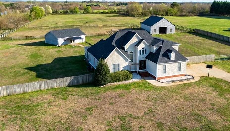 Welcome to your very own countryside retreat in Cowpens, SC. This stunning home is situated on 5.98 acres of prime land. From the large in ground pool, 1 bed/1 bath guest home, to the 3 stall barn and pasture, this property has so much to offer. The home offers a large vaulted ceiling In the living area and trey ceilings in the luxurious master that leads out to a covered porch and spa area. The master bathroom boasts a jet tub, large shower, and wrap around his and hers closets. Just upstairs you will find the secondary bedrooms, each equipped with full bathrooms and large closets. The kitchen offers ample cabinet space and beautiful granite countertops. The large windows in the kitchen and dining area overlook the beautiful outdoor space and pool, making a perfect area for entertainment and hosting. The barn and pasture are perfect for equine lovers. Do not miss out on the opportunity to own this unique property!