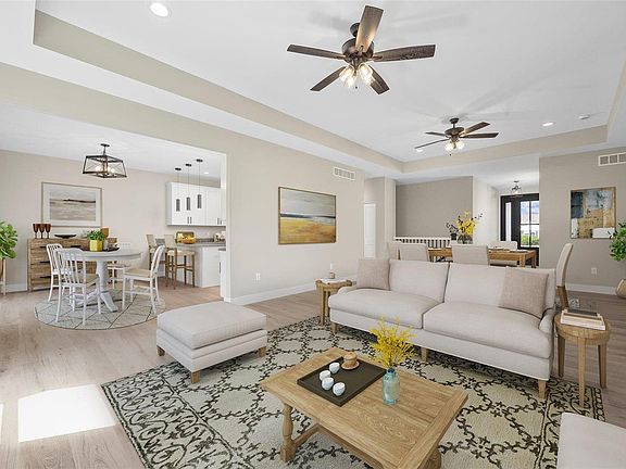 New Construction and READY to move in. Quality built home offering wonderful details. Craftsman look and fresh design in villa style luxury carefree living. Welcomes to this 3 bedroom, 3 bath home. High end luxury vinyl plank flooring, soaring coffered ceiling, gas fireplace. Dining room with butlers pantry and dessert/coffee serving buffet. The chefs kitchen offers an abundance of cabinets-slow close, lazy susan, stainless appliances, recessed lighting, pantry. Breakfast rm with sliding door (interior blinds) that walks out to the covered patio - nice yard area. Laundry/mud rm. Master suite with spa like bathroom, enormous closet. 2nd bedrm/home office, tall windows perfect for natural light. The LL features the 3rd bedrm, family/rec rm & beverage area w/sink. Irrigation system, 2 car insulated & drywalled garage w/opener. HOA - snow removal, mowing, irrigation & water for irrigation, some insurance, exterior maintenance. Subdivision amenities: clubhouse & pool. Convenient location Location: End Unit, Suburban