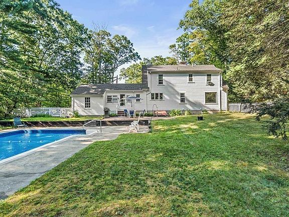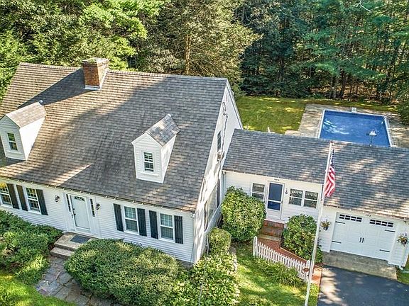 Classic NE Cape Cod Home abutting conservation land and a fabulous neighborhood! Enter into the huge sun lit Kitchen (via the spacious sunroom) with an open floor plan & dining area, granite counters, breakfast bar & tons of cabinets! The front to back living room has hardwood floors, beamed ceilings & fireplace. Additionally, completing the 1st floor is a home office & 1/2 bath. 2nd floor has 3 generously sized bedrooms & the homes full bath. The basement is 1/2 finished for extra living space & has the homes 2nd fireplace. The backyard is entirely fenced in & perfect for entertaining family and friends with an in-ground pool! The town has indicated to the seller that they could easily connect their driveway to Winslow Ln and cut off Circuit St access, buyer to verify if important to them. Passed Title V report in hand.