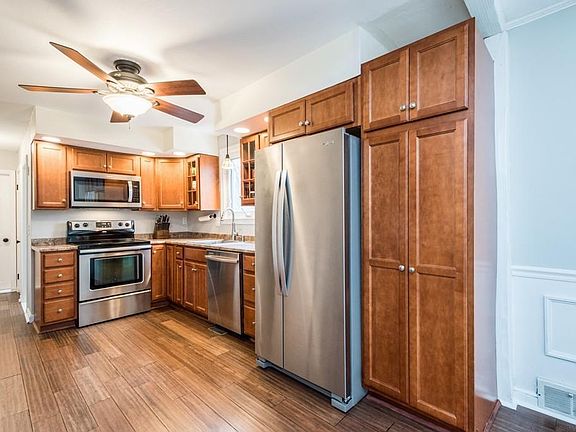 Beautiful Cape with updated open concept kitchen with dining area, stainless steel appliances, recessed lighting, Bamboo flooring throughout entire first floor with freshly painted molding, Beautiful sunken sun room/family room with slider to large wood deck. Lovely living room with fireplace welcomes family and friends. Gorgeous spacious front to back master bedroom with new bow window and lots of closet space next to first floor bath. 2nd floor full bath updated with granite counter top and tile floor is convenient to the 2 second floor spacious bedrooms with wall to wall carpeting. Contact for more information
