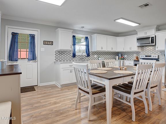 Adorable country cottage with a large yard- almost half an acre! This hidden gem provides the comfort and style of an updated home combined with country living. This beautifully-renovated Acadian home starts with an inviting front porch, perfect to sit on with your morning coffee. The interior is fresh and modern with a split, open floor plan. You will enjoy the slab granite countertops and stylish kitchen backsplash. The kitchen is open to the dining and living space. Down the hall are two bedrooms, a full bath, and a laundry room. The primary suite is spacious and located in a separate wing on the home. The large two-car carport and huge back yard are ready to welcome a new owner.