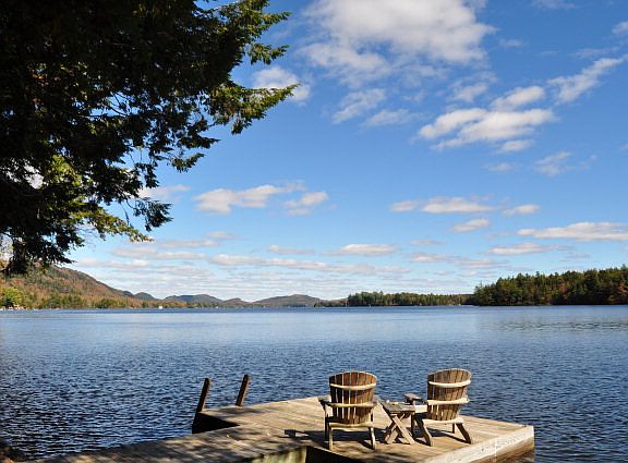 Additional parcel 38.59-1-1 included is the second lakefront lot. Potential for subdivision of one lakefront lot from this 297' lot. This ADIRONDACK COTTAGE was the MIZPAH TEA ROOM dating back to the late 1800's and remains virtually unchanged with the exception that the back wing was added around 1950. The cottage is niceley sheltered and offers fantastic views out onto 4Th Lake. Great room area has large stone fireplace and lakeside covered porch. End of road location assures your privacy.