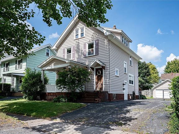 Welcome to this charming nearly 1800 sq ft Cape Cod in the highly desirable North Winton Village! This home exudes character with natural woodwork & classic glass French doors that lead from the living room to an inviting open porch, perfect for relaxing. The spacious dining area is ideal for gatherings, while the open-concept kitchen boasts stainless steel appliances, a convenient breakfast bar, & ample cabinet & countertop space for all your culinary & entertaining needs. A half bath is conveniently located on the first floor. Upstairs, you'll find three generously sized bedrooms & a beautifully renovated full bathroom. The finished attic offers versatile space that can be used as an additional bedroom, rec space or a private primary retreat. Step outside to the fully fenced yard, complete with a deck, creating an ideal outdoor oasis for entertaining or enjoying your morning coffee. You'll also surely enjoy 2-car garage and double wide driveway, a rare city find! This North Winton Village gem combines timeless charm with modern amenities, and an ideal proximity to all of Rochester's best spots, making it a must-see!