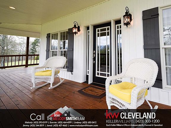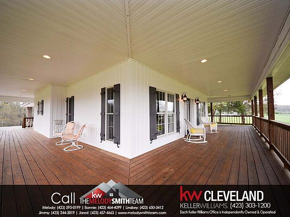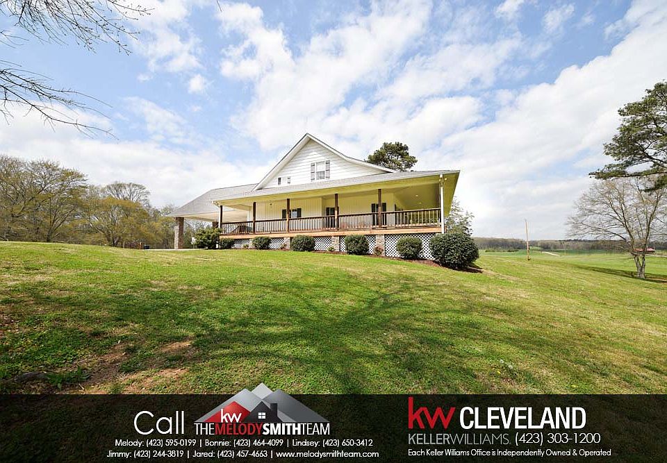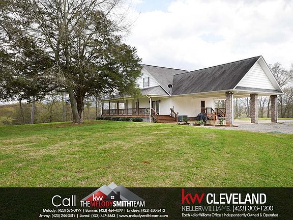 Call the Melody Smith Team at Keller Williams Cleveland for a showing today! COUNTRY LIVING AT ITS FINEST! This beautiful farmhouse offers 1,991 SqFt and sits on over 10 acres of cleared property! The wood stained wrap-around rocking chair front porch invites you inside to the living area, covered in gleaming hardwoods. The gas fireplace and its stone surround draw your eye in and natural light floods into the home to create a warm atmosphere. The dining area sits just off the great room within sightline of the fireplace. The kitchen features beautiful solid surface countertops, solid wood cabinets, stainless appliances, and a beautiful window over the kitchen sink. The rich cabinets continue into the large laundry room, providing ample storage. The master bedroom features a walk-in closet, en-suite, and french doors that lead to the wrap-around porch. Second level is a bonus room area, second bedroom, and a second full bathroom featuring double sinks. The double car attached carport features bead-board ceiling and several can lights for ample lighting. Oversized metal storage building on property. This home offers amazing mountain and water views, located minutes to the Hiwassee River. This home is a slice of heaven!
