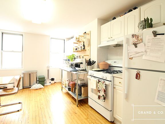 Floor through, spacious junior 1 bedroom apartment with fabulous natural light all day! - Eat in kitchen with gas range stove/oven, microwave and family sized refrigerator. - Windowed, freshly tiled bathroom with tub and vanity. - Separate dressing room/walk in closet. - Large living room with additional closet and space for a home office. - Bedroom alcove easily accommodates a queen. - Hardwood floors throughout. Amazing location in the heart of Williamsburg, just tucked off on a quiet tree lined Street. Close to transportation, 1 block to the Graham L, bars, restaurants, nightlife, galleries, shopping and McCarren Park!