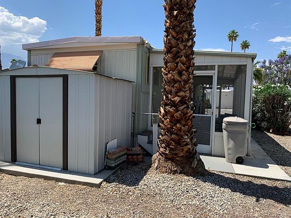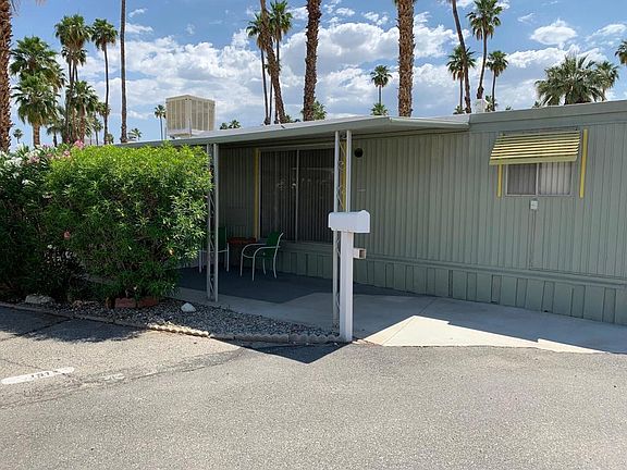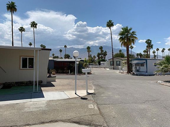 Fully furnished except two pieces of art, recliner and table lamp. Quiet location in Cul-de-Sac of 6 homes. Well maintained home perfect for someone over 55 years of age. Park offers a variety of activities including Pickle Ball, Shuffle Board, Pool with Jacuzzi , Mini Golf, Gym and Community room. Two laundry areas available to residents plus Dog run. Home also has laundry in storage shed. Conveniently located for ease of shopping, restaurants and local entertainment. Convenient to Palm Springs and Palm Desert. Main bedroom is 9'4 X 8'2 plus 8' closet with drawers. Second bedroom /office is 6'2 X 8'10 with wall of closet space with drawers. Air conditioning and swamp cooler. Lots of windows. laminate floors in living and bedroom areas.Newer Hot water heater. Central air and heat approx. 2015Kitchen has garbage disposal, double sinks, gas range with separate broiler, Ceiling fans in Kit. L/R and Bedroom. Space rent approx. $670.00 per month. or $8,196,00 annual.