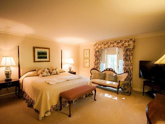 This 3 bedroom, 4 bath cottage features a large great room with cathedral ceiling, lit abundantly with natural light from skylights, a gas fireplace, and built-in shelving. Access the screened-in porch, where entertaining is a delight, as you view the Old White TPC golf course. Relax in the newly remodeled master suite with his and her bathroom, dressing area, showers, and crown molding, with stunning views of #5 of the Old White TPC. Access the back patio or kitchen from the dining room, with brick accent wall. Convenience to Greenbrier resort amenities, while being in close proximity to members-only activities at The Sporting Club make this the perfect weekend getaway cottage.