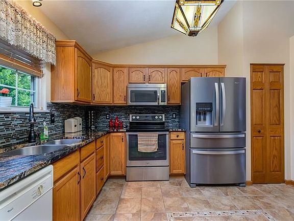 If meticulous is what you crave, then this home is perfect for you! So many upgrades have been made since the owners purchased. A backyard oasis with an 18x18 ft deck (wood replaced) w/ Sun Setter automatic awning, an 18x18 concrete patio & a 15' round flagstone sitting area was created, w/ lush landscaping surrounding it! New upgraded features include: oak treads, upgraded lighting, hardwood floors in living, dining & hallway areas, stone facade on dining wall, back splash & granite counters, stainless refrigerator, MO, & Electric stove w/ convection oven. Owners created a pass through wall from kitchen to dining with granite top, cove molding in kitchen & master, both vanities on main floor were replaced with amish-built units w/ granite tops & raised bowls, & a travertine wall splash was added in guest bath. All closets had organizers added, & a gas log fireplace w/ thermostat in LL was installed w/ amish-built mantle & stone surround.