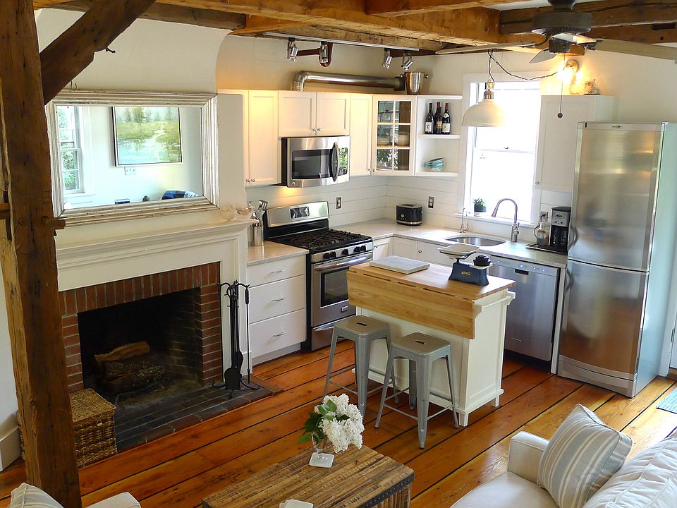 Fabulous condo on the edge of both the West and North end of Portsmouth offers the perfect blend of character and modern style. Recently refreshed kitchen features marble counters & shiplap backsplash. Original features include wide pine floors, wood burning fireplace & dramatic high ceilings with exposed beams . Newly constructed walk in closet in the master bedroom features great storage plus antique awning window . Sweet 2nd bedroom with loft space plus finished lower level for ample guest space. Rear deck to be replaced prior to closing with views of the North Mill Pond! Walk to downtown plus 2 deeded off street parking spaces.