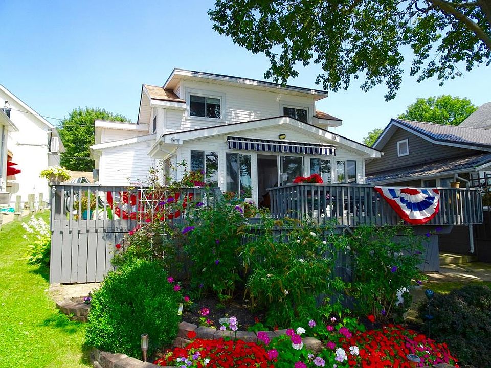 Seller is looking for Highest & Best offers by noon today, August 31st! Fabulous elevated Main Lake views. Mature tree shades the deck and lovely yard. Large Living area off of the vaulted Florida Rm. boasting ceramic floors and skylights. Kitchen features newer countertops w/ an eating bar and offers access to the rear patio, garage and storage shed. Both bathrooms have ceramic tile floors. Upstairs bedrooms offer plenty of natural light. Newer roof. Home faces south and has a retractable awning on the elevated deck. Large deck with built in seating on water front which offers a boat dock.