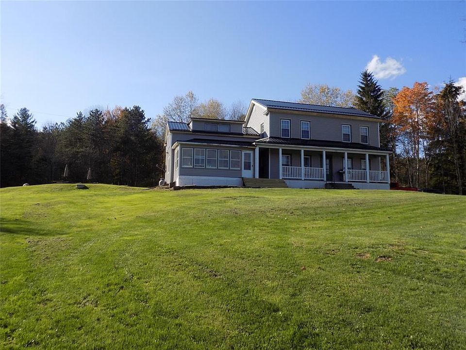 Enjoy the beautiful hilltop views from your front porch, or from inside your four season room! This two story home sits on 3.20 Acres in a private country setting! The home offers the original charm and character along with a completely updated kitchen with plenty of space for everyone! The kitchen has Niagara cabinetry with soft close doors and drawers, granite counters, ceramic backsplash, two countertop bars, a nice eating area, and has sliders that open to the four season room. There is a first floor laundry with nice storage space, first floor office, bonus room, full bathroom and pellet stove to enjoy / off-set costs! The home is located in the town of Colesville (taxes) and is in the Windsor school district. New vinyl siding being finished, new metal roof & roof warranty will transfer to the new buyer, newer h/w/h and large pressure tank, furnace installed 2014. Enjoy the view from the yard and the in-ground pool w/diving board. There is also a shed & barn on the property.