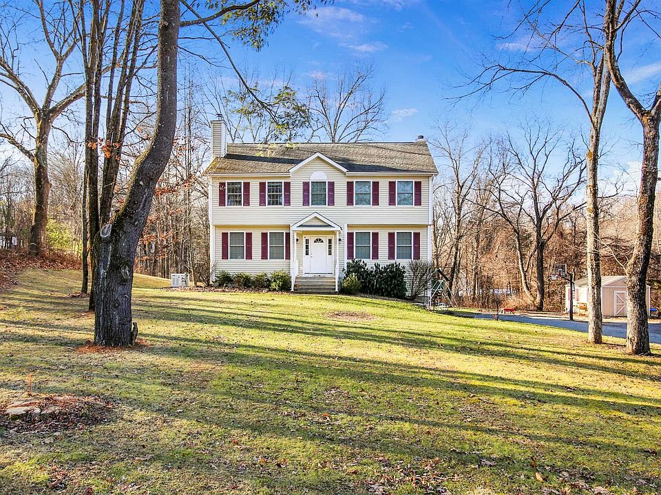 Beautiful Center Hall Colonial set back on 2.5+ acres. Upon entering, you'll be wowed by the spacious entry with high ceilings and an open floor plan. This light and bright home boasts a formal DR, LR & a large EIK that looks out over the FR with a cozy fireplace. Kitchen has granite counter tops, solid wood cabinets w/ crown molding & SS appliances & .5 BTH complete the main floor. 2nd floor has 4BDR and 2 BTH. Large MBR en suite includes a nice sitting area, WIC and lots of natural of light. Renovated MBTH has an enormous shower, beautiful soaking bathtub & double vanities making it the perfect place to enjoy peace and tranquility. HWF throughout the entire home. Finished basement is perfect for the kids to play or watch your favorite movie. Large level yard is perfect for outdoor fun and entertaining. Whole house generator 2018. New MBTH 2018. Washer, Dishwasher & Fridge 2018. Gas Stove 2019. Swing Set 2018. Basketball Hoop 2019. Move in ready home!