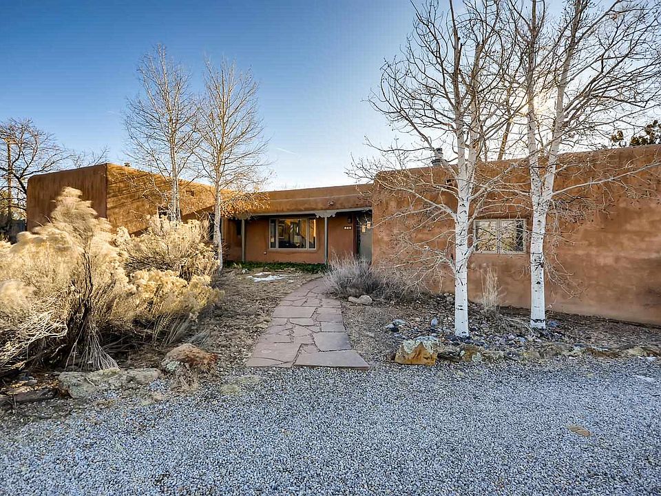 Beautiful move in ready home with mountain views on a gorgeous half acre private walled-in garden scape. Architectural features include hardwood floors, contemporary kitchen, kiva fireplace, split floor plan and generous room sizes. Light-filled ambience throughout with south facing French doors opening onto superb interior gardens and flagstone patio. A guest studio/third bedroom has private entrance and own bath in separate wing of the home. A detached studio in the garden with heat, AC, lighting, and antiqued hardwood floors is prime for an art studio, home office, or future guest house. So much to offer for family, entertaining, potential rental income, in-home professional, or artist. Wonderful location off Old Pecos Trail and Don Gaspar. Near the hospital and 2 miles from the historic downtown Plaza, with the Botanical Garden, Museum Hill, bike trails and Santa Fe Tennis and Swim Club all within a few blocks. Sellers are willing to negotiate an allowance for Stucco repairs.