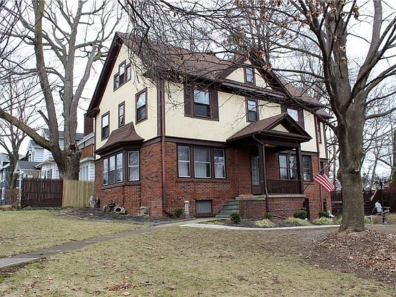 Outstanding Stately Brick & Stucco home on large lot surrounded by privacy hedges. Home faces Pardee Rd with driveway on Pardee Rd. Old House Lovers delight w/incredible Gumwood trim, leaded glass, crown moldings, French doors, hardwood floors. Spacious eat-in kitch w/island breakfast bar, granite counters & stainless appliances. 2 nice full baths! 2 beautiful sunrooms! 4 spacious bdrms! Large walk-up unfinished Attic. The Basement rec room w/bar & half bath has great potential. Huge deck & wonderful landscaping! New Roof approx 2002. New boiler & chimney liner 2002. New water heater 2014. New leaf guard gutters! Subtract $856 from taxes for STAR. Call for showing!