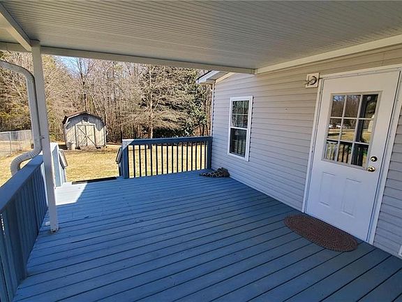 Very Well Maintained home and move in ready! Open floor plan, great for entertaining! Primary bedroom offers walk-in closet and ensuite bathroom, separate shower, garden tub, separate vanity sinks. 2 Car detached carport. Partially covered deck (18 x 12) overlooks fenced backyard with storage building. Laundry room has storage cabinet with area on top for folding clothes, with new entry door to deck. Refrigerator and washer/dryer stays. Per seller updated double hung replacement windows in the past couple years. Per seller, roof is only 6-7 years old. 16 x 8 covered front porch.