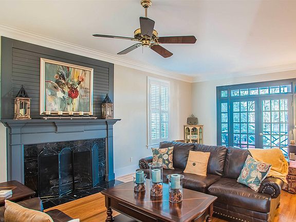 - RoomLivingRoomFeatures: Ceiling Fan(s), Fireplace, High Ceilings, French Doors, Sunken, Floors-Hardwood, Molding