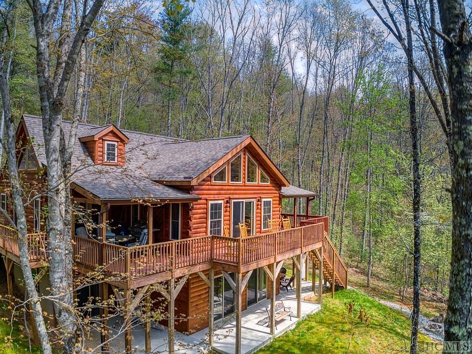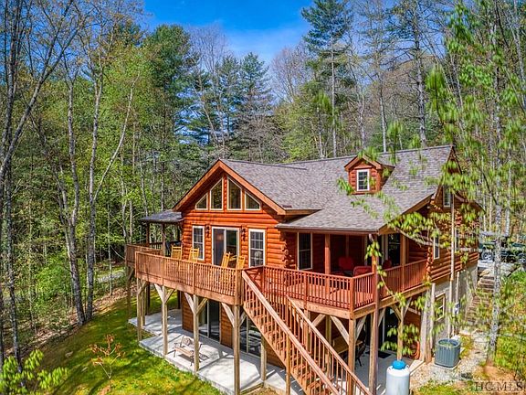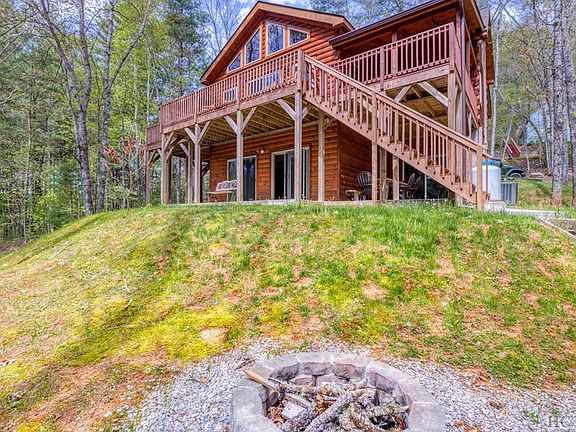 Beautiful 4 bedroom, 4 bath log cabin with 2 bonus rooms, and a community dock on Lake Glenville. This functional 3 level home and very spacious home with outdoor eating spaces on the large porch, fire pit, storage building, game room, and fireplace, all in a peaceful neighborhood close to the lake. Go boating, skiing, and tubing on Lake Glenville, or rafting and kayaking on nearby High Falls