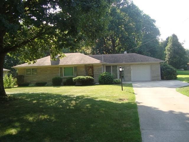 Hard to find all Limestone ranch in desirable location. Well maintained pride of ownership throughout. Large living room offering limestone fireplace, eat in kitchen with lots of cabinets and counters all appliances remain. Two good size bedrooms with hardwood flooring. Enjoy quiet time in breezeway off garage. Basement is finished with game room featuring fireplace. There is shower and sink in basement with great potential. Well manicured large lot with some mature trees and privacy. Take a look!