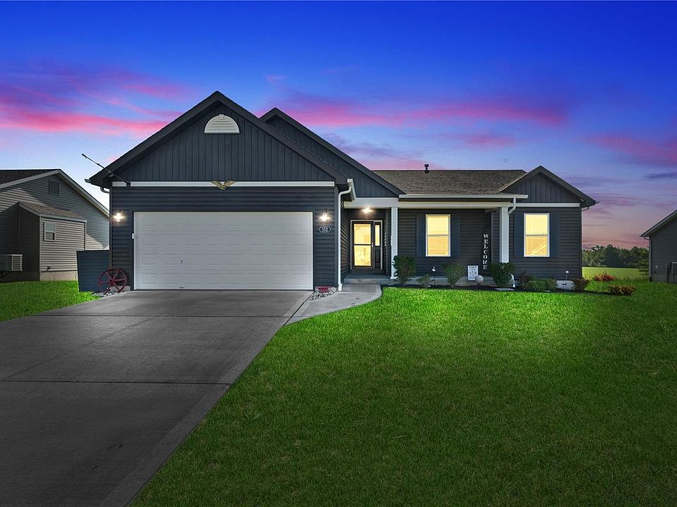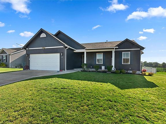 Enjoy the country life just outside Wentzville. Relax with your morning coffee under the covered front porch. This 5 yr old home features 1516 sq ft, 3 beds, 2 baths, MFL, workshop area in garage. Kitchen offers quartz counters, tile backsplash, stainless appl, gas range, motion activated faucet, reverse osmosis system, soft close cabinets, & crown molding. The primary suite has an expanded bedroom w/ an extra closet, private bath w/ adult ht vanity, deluxe shower w/ seat. Fenced backyard w/ a patio for BBQs. Other great features: architectural shingles, vault in GR, new lighting, lever handles, pestshield system, tilt in windows, 50-gallon WH, upgraded insulation, Christmas light receptacles in soffit, water filtration system & water softener. Gas: dryer, furnace & WH. Rough in bath & egress window in basement for future finish. Subdivision sidewalks, USDA area. Remainder of 10 yr foundation leakage warranty builder gives each home to be transferred at closing. Ref/Washer/Dryer stay.