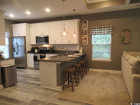 No HOA!! This gorgeous 3 bedroom 2 bath home is move in ready! This home features an open floorplan. The kitchen includes granite countertops, stainless steel appliances, backsplash, soft close cabinets/drawers, and a bar that offers seating. The inviting living room features a coffered ceiling with a sliding glass door to the back patio. This home is situated in a cul-de-sac on a lot that is lined with trees, offering ample privacy in the fully fenced backyard. The spacious master bedroom offers a tray ceiling, walk-in closet along with a welcoming bathroom with custom tile walk-in shower, double vanity, and linen closet for storage. The attached 2 car garage has lots of storage and pull down stairs for easy attic access. This home is located within 10 minutes of downtown Conway with easy access to all major highways and within 30 minutes to everything that the Grand Strand has to offer.  All measurements are approximate, buyer to verify all information.