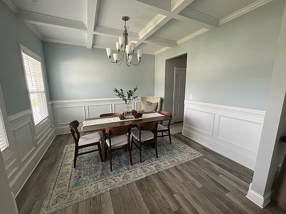 New Single family home with gorgeous view. - Great room with gas log fireplace with decorative mantle and granite surround in "Absolute Black". - Covered porch creates the perfect outdoor space.Open kitchen features granite countertops in "Luna Pearl", "Arctic White" tile backsplash set in a beautiful brickwork pattern, white shaker cabinets, pantry, and sink with views to the backyard; stainless steel microwave, dishwasher, and smooth top range. - Elegant formal dining room painted in Sherwin Williams "Lullaby" with stunning coffered ceiling and picture frame wainscoting detail. - Half bath with tile flooring, pedestal sink, and oval mirror. - All Bedrooms on 2nd floor with access to hall bathroom with tub/shower combination. - Primary Suite with tray ceiling and crown molding, walk-in closet; Primary bathroom with a garden soaking tub and separate shower with tile surround, dual sinks with quartz countertops in "Niagara", espresso shaker cabinets with drawer stack, tile flooring, and private water closet. - Computer/loft area at top of stairs. - Laundry room is conveniently located to all of the bedrooms. - Durable luxury vinyl plank floors in foyer, dining room, kitchen, and great room. Owner pays for the HOA. Tenant responsible for the utilities such as water, sewer, gas, electric, internet .