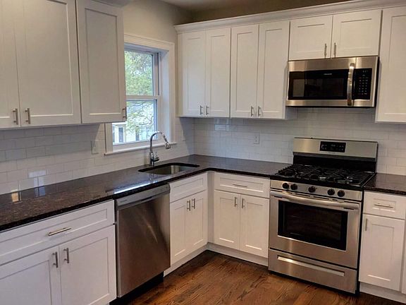 Beautiful 2+ bedroom apartment in convenient location available for immediate occupancy. This sunny top floor apartment has been completely remodeled and features central AC, hardwood flooring, an updated marble bath, open floor plan and all new kitchen with stainless appliances including 5 burner gas range, white shaker cabinets, subway tile backsplash, peninsula, granite countertops throughout and your own private deck. Quiet building, convenient location. Bring your good credit of 650+, strong employment history and great references. Background check will include credit, criminal and eviction checks. Small dog under 25 lbs or cat may be considered by owner. Move in costs of $6900 include first, last, 1/2 month security and 1/2 month brokerage fee. Rent includes water, trash, sewage, off street parking and use of common laundry in basement.