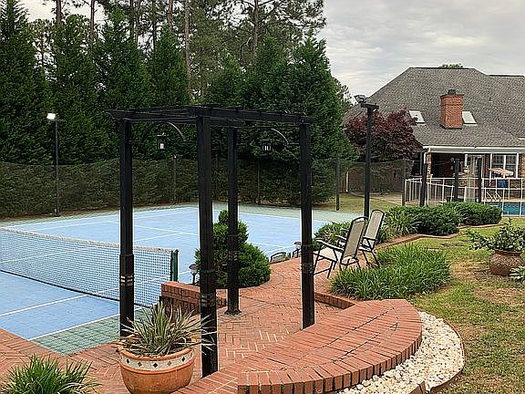 Open 2 story Family Room! Office and Exercise room on second floor. Office room with skylight and custom wall-wall cabinets. Exercise Rooms has two skylights and a walk-in closet with bookshelf. Three bedrooms on second floor. Third bedroom has a Toy closet or can be used as an extra closet or sewing room. Media Room with sorround sound, built-in cabinetry on 3rd floor includes wet bar, fridge & a contemporary styled half-bath. Master and Guest bedrooms on the first floor. Bathroom in the guest bedroom is handicapped friendly with walk-in shower. Custom Sturdy Wrought iron fence covering the entire backyard with two metal gates conveniently placed on either sides of the backyard. Tennis court with viewing platform and Multi game versa-court tiles with LED flood lights, with fence. 20' x 40 ' pool with diving board, professionally installed fenced, meeting the USPSC safety standards . All hardwood floors. Completely updated bathrooms. New appliances; Professionally landscaped yard, irrigation system connected to the Well. Outdoor kitchen with Grill, Patio. Chicago-Pizza oven. New Roof(2015) with 45yrs shingles, with transferrable warranty.